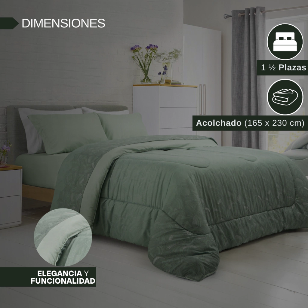 Beneficios del Producto: Este Acolchado Estampado de la línea Hogar es la opción ideal para quienes buscan un toque decorativo funcional. Su composición 100% microfibra premium te asegura una experiencia suave y cómoda durante la noche, mientras que su diseño moderno aporta frescura y elegancia a tu dormitorio. Además, es fácil de mantener, asegurando durabilidad a lo largo del tiempo.