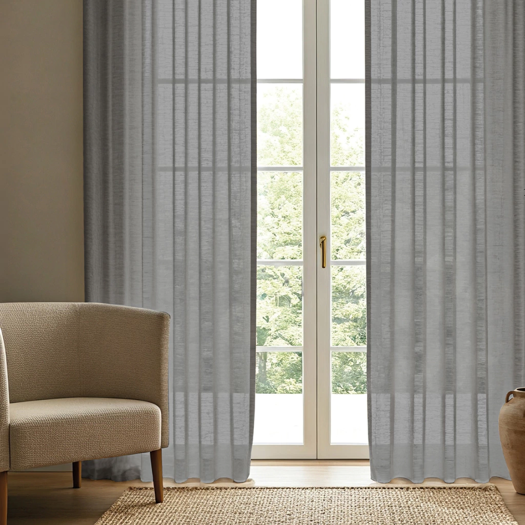 Elegí la frescura y ligereza de las cortinas Berlín de Jean Cartier: tejido símil gasa con cinta fruncidora y una medida extra amplia de 270x205 cm, perfectas para vestir tus ventanas con un estilo moderno y delicado.