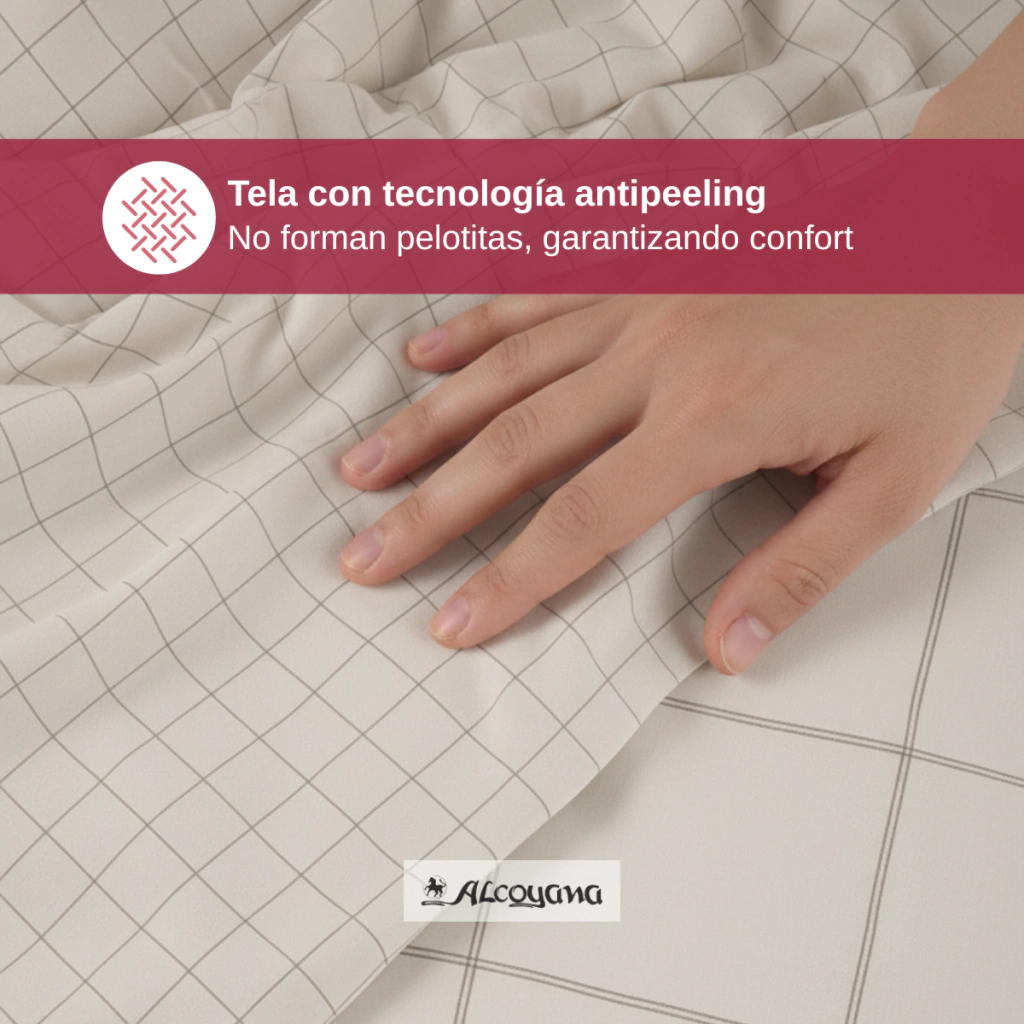 Descubre el equilibrio perfecto entre comodidad y resistencia con el Juego de Sábanas Organic. Su combinación de algodón y microfibra premium ofrece una textura suave y envolvente, mientras su tratamiento antipelusa (antipeeling) asegura que se mantenga impecable lavado tras lavado.